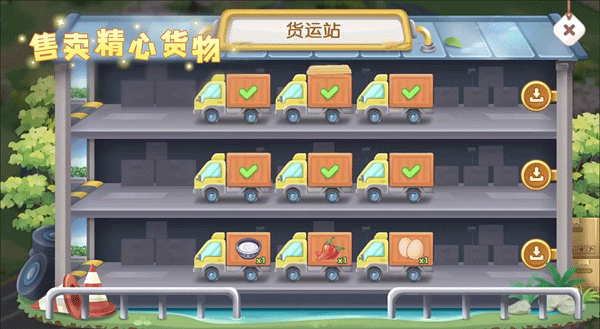 將獲取到的農作物、加工產品等放到貨車上,開車去到其他地方出售商品。