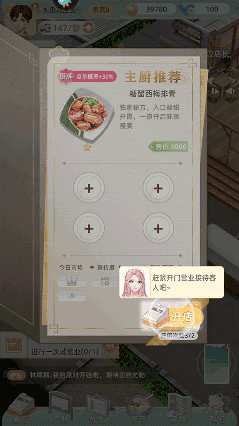 2、開展宣傳活動,增加客流量,不斷升級餐廳,獲得更高的收入,是非常有趣的。