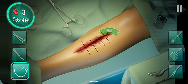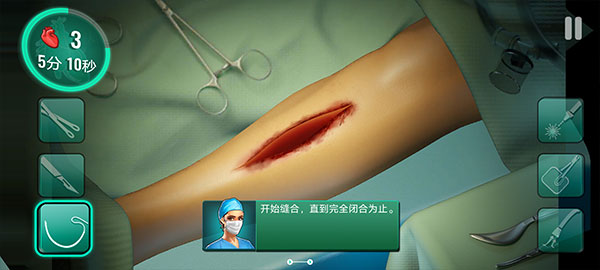 手術過程中,需要玩家根據手術指導進行不同的操作,如切開皮膚、縫合傷口、縫合切口等等。每個操作都需要精確的手部操作和正確的時間掌握。如果操作不當,可能會導致患者死亡或并發癥,從而失敗任務。完成任務后,玩家會獲得獎勵點數和金幣,以供購買更多器具和藥品。