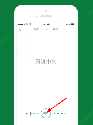3、你就可以通過說話來對語言進行翻譯,語音輸入完成后點擊“完成”。翻譯結果就會出現。