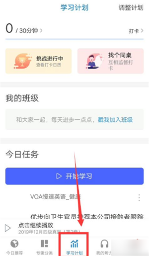 首先,打開每日英語聽力app,在app界面的下方點擊“學習計劃”選項。