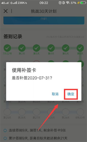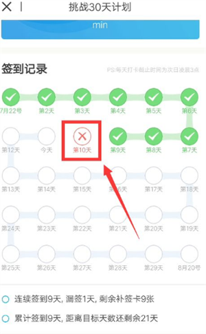 接著,我們需要點擊自己忘記簽到的那一天,進行補簽。