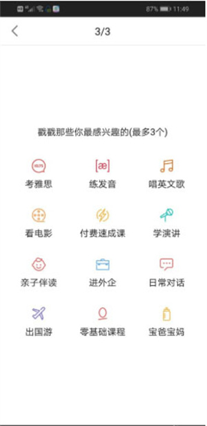 1、打開軟件,完成基礎測試和水平定級測試后,點擊【定制學】會給你一些試用定制課程。