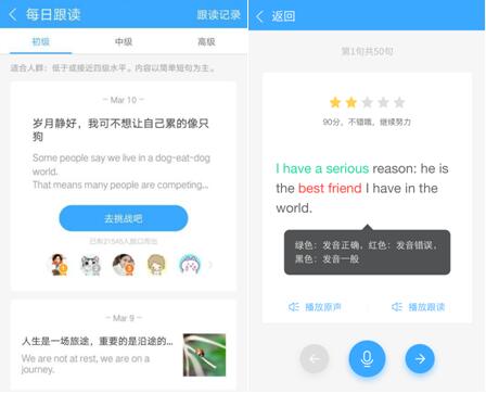 一個人練習口語倍感無聊,而與好友PK就有趣了很多。每天完成跟讀后,用戶可以查看排行榜與學霸PK,增加學習動力,金山詞霸會給每日前三名的學霸們贈電子書一本以示鼓勵。