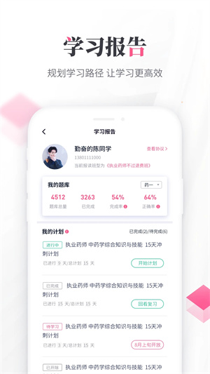 3.學習報告:全方位檢測學習情況,計劃完整量及題庫完成數據