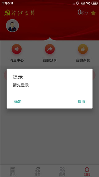1、首先進入龍江先鋒app官方最新版,點擊我的,點擊確定;