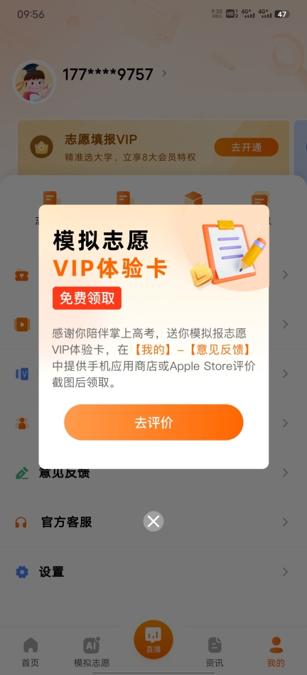 6、ai一鍵生成志愿表功能需收費使用,但是我們也可以通過其他方式免費獲取模擬志愿VIP體驗卡,快來體驗吧!