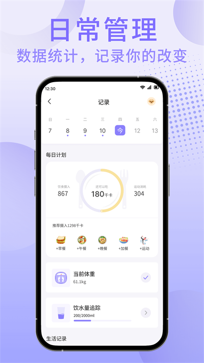 1這是一款具備智能科學(xué)性的健康管理軟件,它能夠依據(jù)個(gè)人的飲食與運(yùn)動(dòng)狀況,實(shí)現(xiàn)個(gè)性化健康瘦身計(jì)劃的定制服務(wù)。