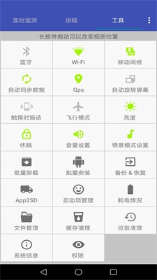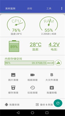 4)實時監控系統性能,提供CPU、內存、電池狀態信息。