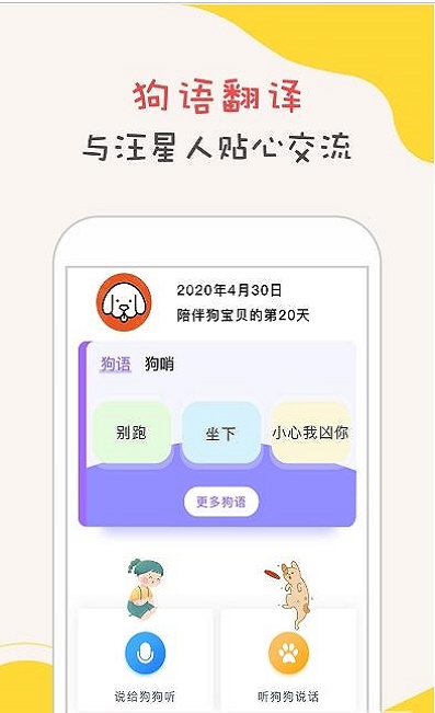 狗語狗狗翻譯器是一款助力用戶進行語言翻譯的軟件。它能出色地為用戶化解與心愛動物交流時存在的障礙,讓用戶得以更好地照料自己的寵物。而且,用戶還能隨時隨地與寵物互動,使自己的寵物變得與用戶格外親近、可愛。