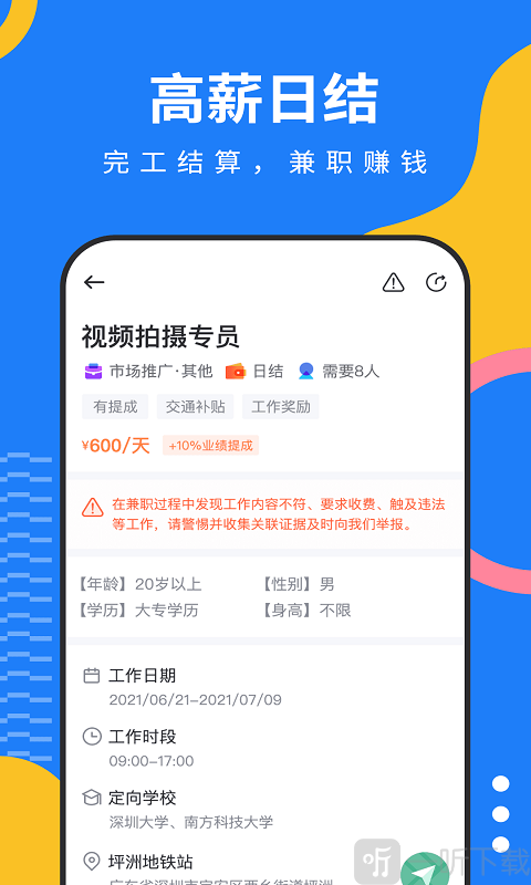 3.這是一個非常靠譜的兼職平臺,不僅可以長期的去進行兼職,短期兼職也是可以的。