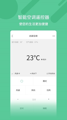 軟件能給你的生活帶來諸多便利。無論身處何方,只需打開手機,就能一鍵操控家中各類空調。軟件的控制功能十分齊全,各項功能都極為專業,通過WiFi可實現快速連接,讓你的生活從此邁向更智能的境界。