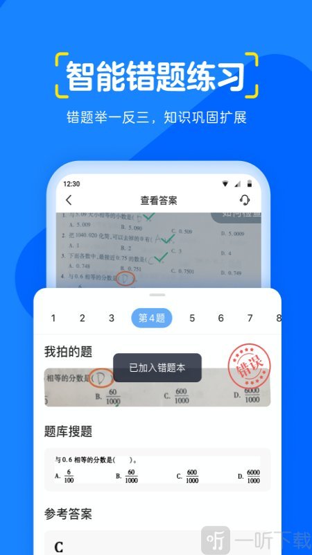 1.作業(yè)助手:拍一拍數(shù)學(xué)語文作業(yè),自動批改答案。