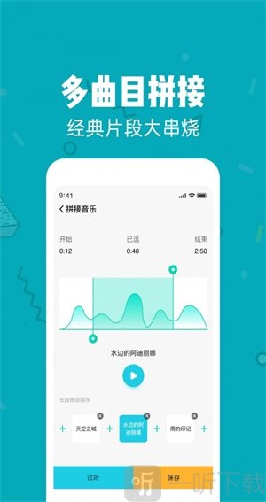 2.音頻合并:各種音頻,無縫拼接合成,編輯自己喜歡的音頻鈴聲MP3;