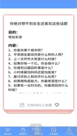 這款軟件相當實用,里面有許多不肉麻卻能瞬間戳中女神心的情話,助力你贏得女神青睞。關鍵是,它完全免費,且沒有廣告,不會突然彈出收費窗口,十分人性化。對于那些實在不知如何追求他人的用戶來說,值得一試。