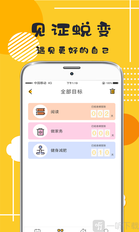 3.該應(yīng)用程序可以幫助您成功管理目標(biāo)計(jì)劃并養(yǎng)成良好的習(xí)慣,幫助您完成每個(gè)小的目標(biāo),小的計(jì)劃和小的日常工作。