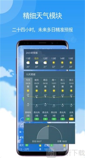 3.動態顯示日出日落時間,提醒空氣質量,風力和風速;