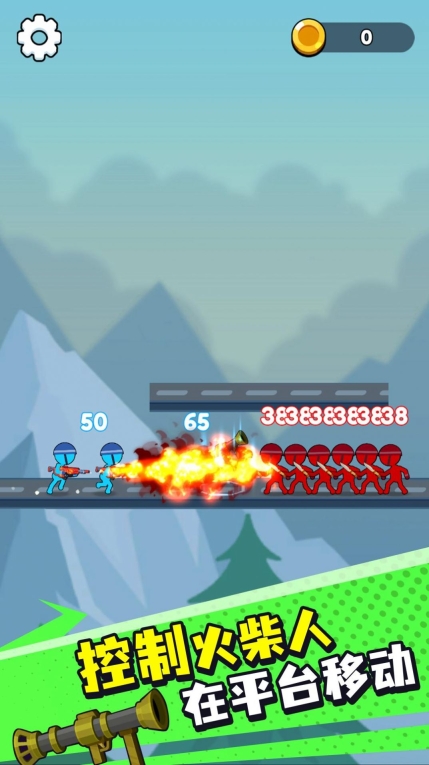 游戲采用紅藍雙人陣型,挑選你的火柴人角色,解鎖槍支、大炮等武器,盡情瘋狂炮轟敵人,目標是將敵方陣營全部殲滅。