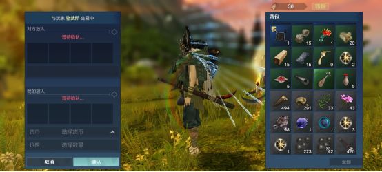 當另一位旅者通過了交易申請,便會彈出交易面板,按照面板上的要求操作即可。物品會立即進入背包中。