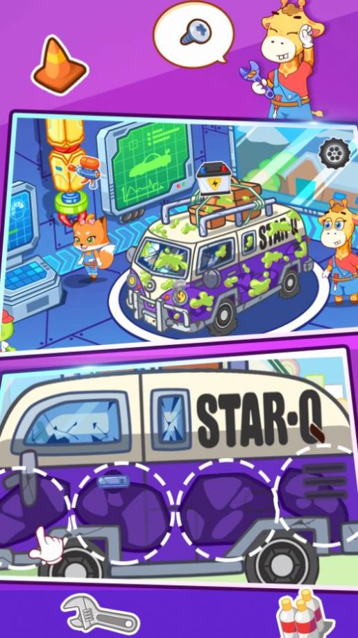 2、在車庫修理站修復汽車的損壞零件,成為最出色的兒童車庫修理技師。