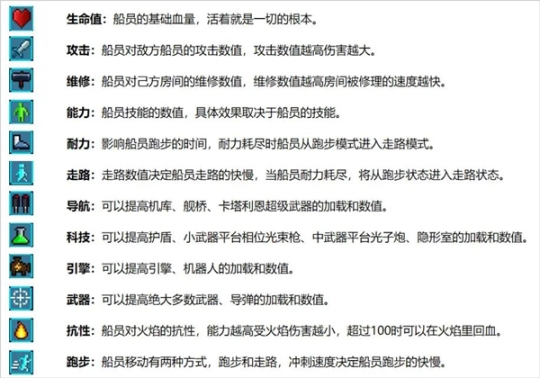 你需要特別注意每個房間的屬性,為房間配置相應屬性的船員能極大增強房間能力。