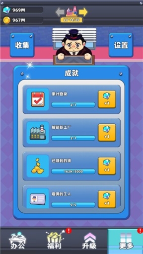 玩家需要引領自己的員工走向發家致富之路。游戲中會設計各類精彩的隨機事件,你得妥善解決。并且,你做出的每一個決策,都會對玩家產生影響。在挑戰過程中,你要拓展經營范圍,擴大公司規模。此外,玩法與挑戰內容十分有趣且豐富,你甚至能夠參與不同項目的投資。