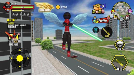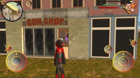 左側移動、加速,右側繩索,攻擊(跳躍),跳躍,右上側的武器更換以及血量、經驗的顯示都實時更新,一覽無遺,憑借著大家自由的玩法,與其他幫派的人物進行交火,期間殺人能夠獲得經驗,殺多了會產生星級,警察和其他附近角色會特殊照顧你對你展開火熱的進攻,而如何存活,如何將其他人物擊殺則是你所需要完成的任務。