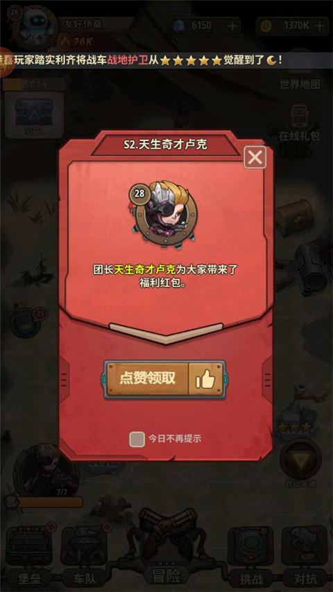 游戲中有團隊會不定時發送福利紅包,我們只需要點贊就可以獲取鉆石了