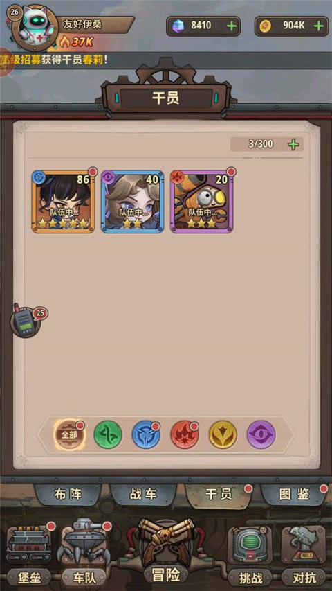 5、對戰車升級完成后我們進入到干員界面,然后選擇星級高的干員進行培養