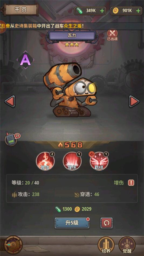 6、如下圖玩家可以通過升級、覺醒還提升戰斗力