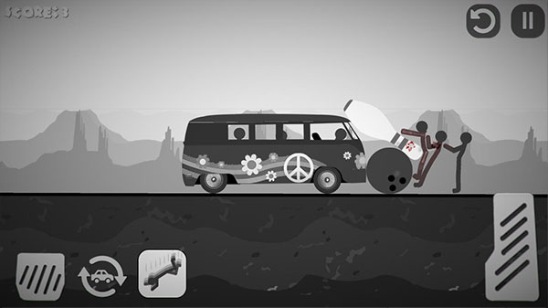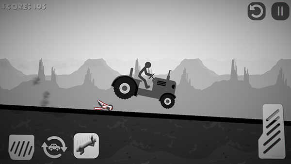 2、開始游戲后,玩家需要通過點擊左右兩側(cè)的剎車以及按鍵控制車輛撞擊前方的火柴人。