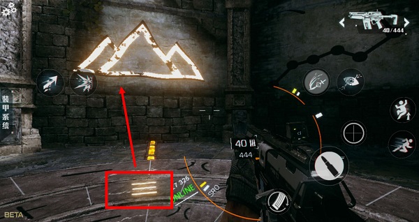 再來是走上【2】鍵,操控中間環和外環移動,使中間圈圈上的圖案,使墻上的“山”亮起,離開【2】鍵。