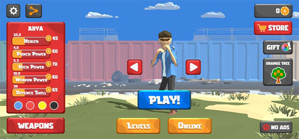 1、打開街頭搏斗官方版,進入游戲主界面,可以通過兩邊的箭頭號切換不同的角色,
