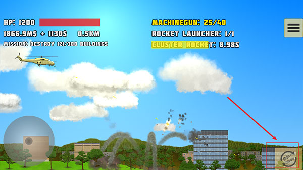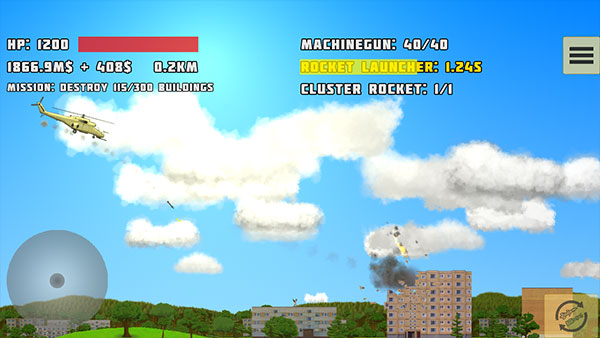 - 在不同的建筑物上射擊你的火箭,看著它們倒塌。
