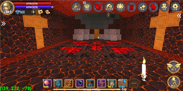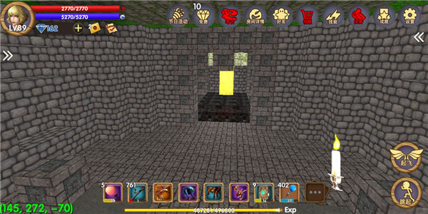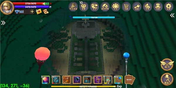 玩家進入游戲的時候可以先創建一個創造模式的世界,進入新建造的世界之后大家可以看到一個小房子,那是游戲中的固定出生點。玩過一段時間的玩家都知道游戲中有一個天空城,大多數人只有到后期等級較高才有能力去往天空城打怪。創造模式中玩家不需要考慮自己的等級直接點擊起飛就行,大家可以運用這個模式了解到天空城。