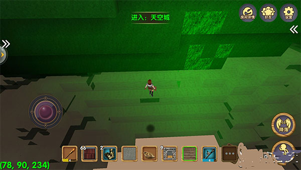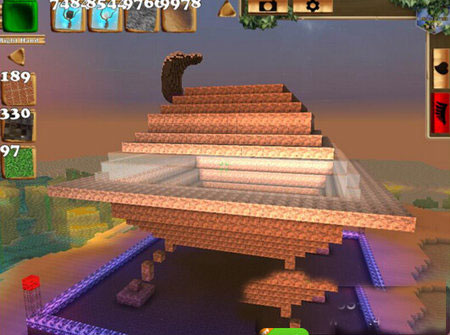 游戲的左下角有一個坐標指示,最后一個坐標接近200的時候玩家就到天空城了。天空城上有很多稀奇古怪的東西,白天只會出現小動物,到了晚上各種各樣的大怪物就出現了。不過這種情況多出現在普通模式里,創造模式中玩家基本上很難遇到怪物,因為在這個模式中玩家是等同于上帝的存在。