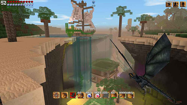 游戲中充滿海水的區域在正常情況下不適宜玩家逗留太久,可是創造模式下玩家可以一直在里面玩耍,還能將西瓜放到海水里面玩。這些都是在普通模式中體會不到的樂趣,玩家還能利用創造模式給的方塊或者物品建造更加宏偉廣闊的房子。
