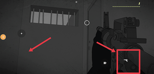 4、在游戲中通過左邊屏幕控制槍的瞄準點,右邊槍按鈕為攻擊
