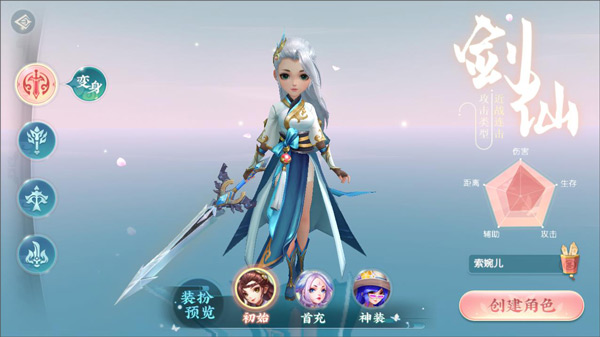 外觀分為衣服、武器、羽翼、坐騎、御物、頭像框、頭像、背景等,玩家在游戲中可獲得衣服、武器、羽翼碎片和材料,激活初始服裝后玩家可利用材料制作并獲取新服裝。