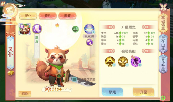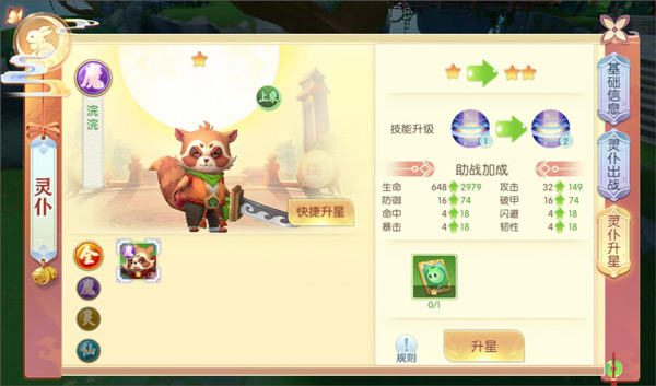 玩家通過主線任務和副本挑戰獲取升星材料,給靈仆升星后可在戰斗中幫助玩家助戰加成,提高生命力、攻擊力、防御力等,靈仆升星后可大大提升靈仆屬性,靈仆主動技能也會提升等級。