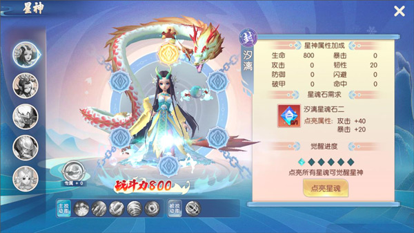 玩家通過主線任務和副本挑戰獲得星魂石,星魂石可點亮星神屬性,提升星神屬性加成;點亮所有星魂可覺醒星神,玩家可在戰斗中切換星神形態進行通關挑戰。