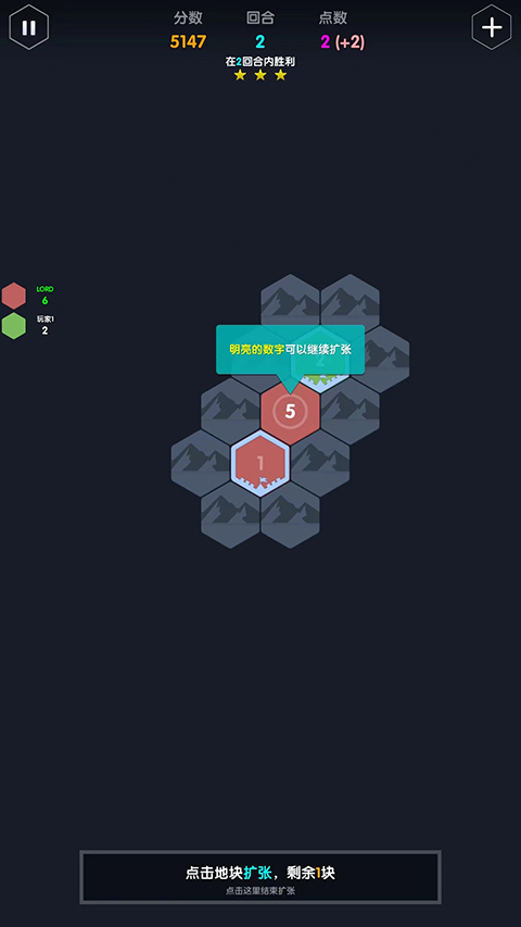 4、接著點擊相鄰的地塊,可看到自己的模塊已分散出去并占領了新地塊,點擊新地塊可以增加強度,