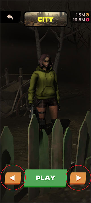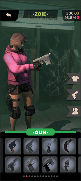 玩家點擊首頁store即可進入商店,可以切換人物以及衣服,也可以購買武器。