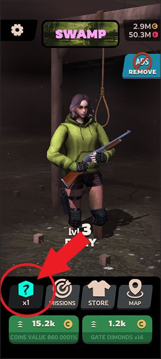 玩家點擊首頁問號按鈕,即可獲得一把隨機武器進行游戲。