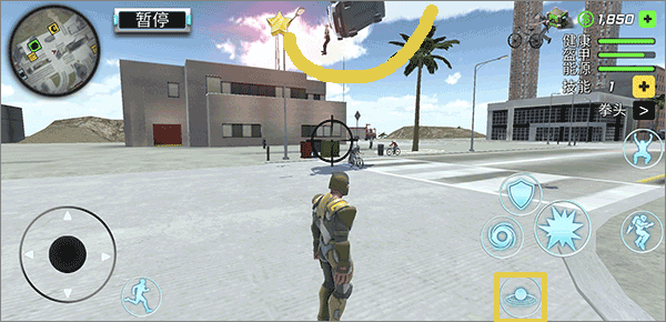 4、按下黃色方框內的按鈕是可以把敵人懸浮在天空中,或者可以把敵人擊飛;