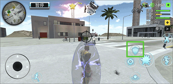 5、按下綠色方框內的按鈕是可以為自己添加一個防護罩;