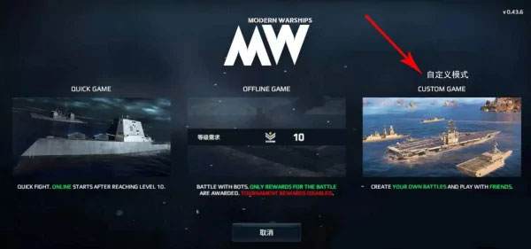 1、啟動現(xiàn)代戰(zhàn)艦這款游戲,點擊位于進入戰(zhàn)斗右側(cè)的按鈕。