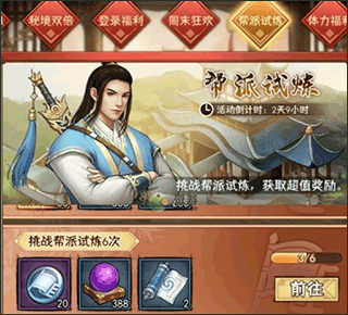 4、通天塔、逐鹿中原打不過可以使用幫派大佬武功助戰(zhàn),每個武功每天一次。