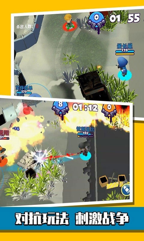 萌蛋護衛隊,一款超有趣的動作槍戰小游戲!游戲以3V3對決為主,玩家要挑選游戲角色與武器,留意障礙物及危險敵人。在戰場上,帶領隊友,激發團隊戰術的多樣變化,速戰速決,擊敗對手,領略超乎想象的槍戰對決魅力。打敗敵人能收獲豐厚獎勵,同時要全力保護目標角色,不讓其受絲毫傷害,時刻注意自身位置,避免被敵人攻擊,與敵人不斷周旋,憑借智慧引領隊伍走向勝利。游戲內還有豐富的游戲場景與地圖,玩家可盡情暢玩。喜歡此類游戲的朋友,快來下載體驗吧!