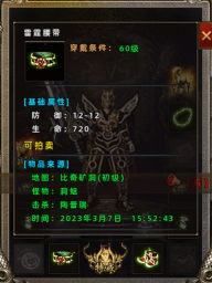 【物品來源】地圖: 比奇礦洞(初級(jí));怪物:僵尸;擊殺:陶晉瑞;